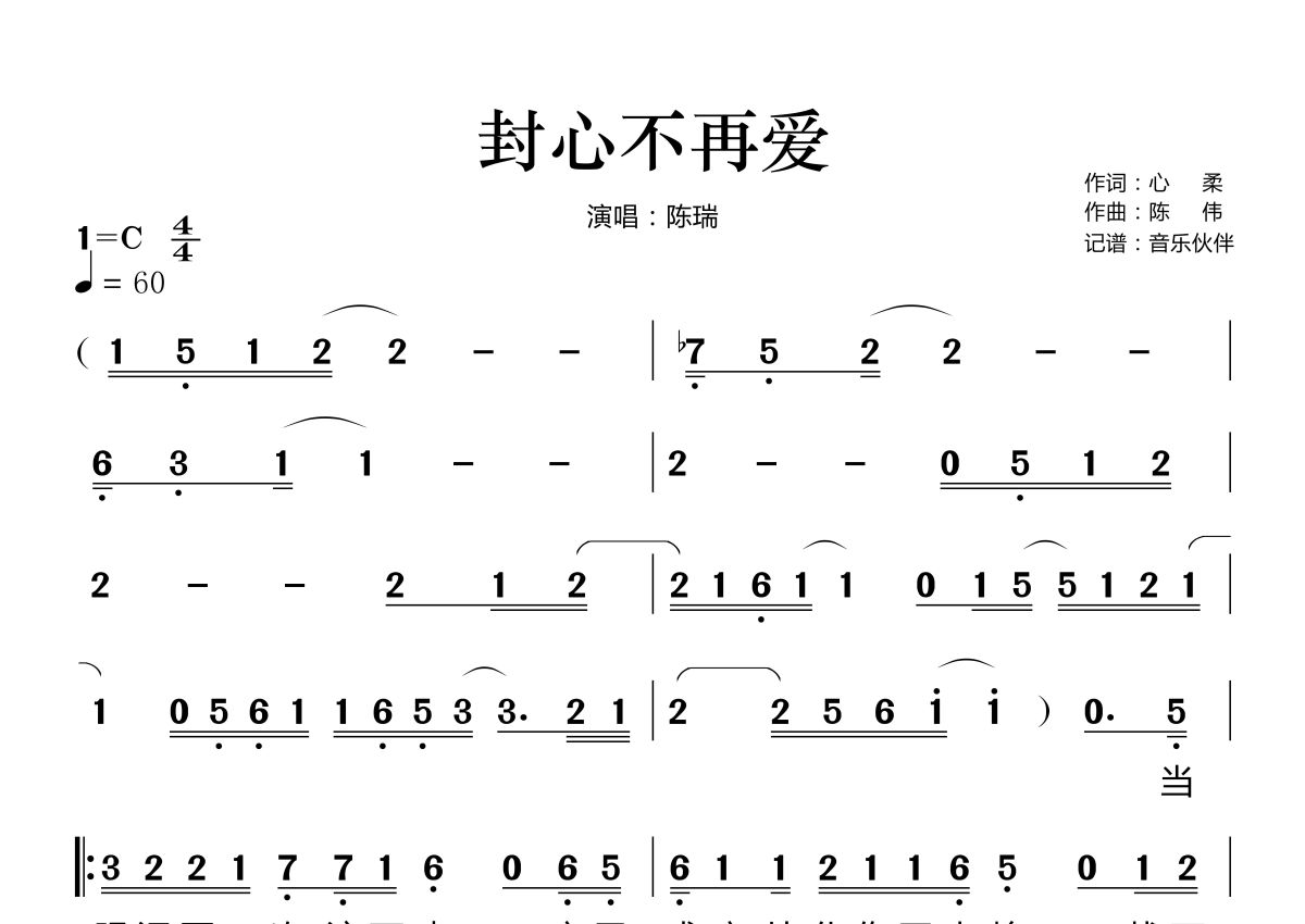 封心不再爱简谱 - 陈瑞演唱