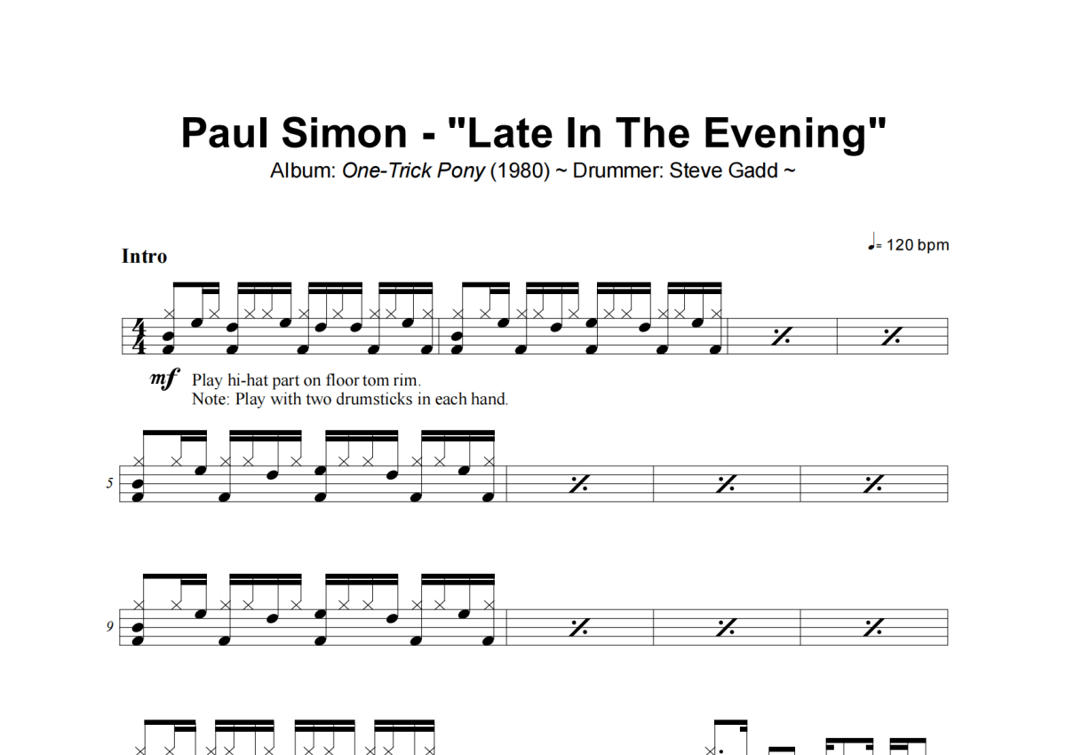 Paul Simon《Late In The Evening》架子鼓谱