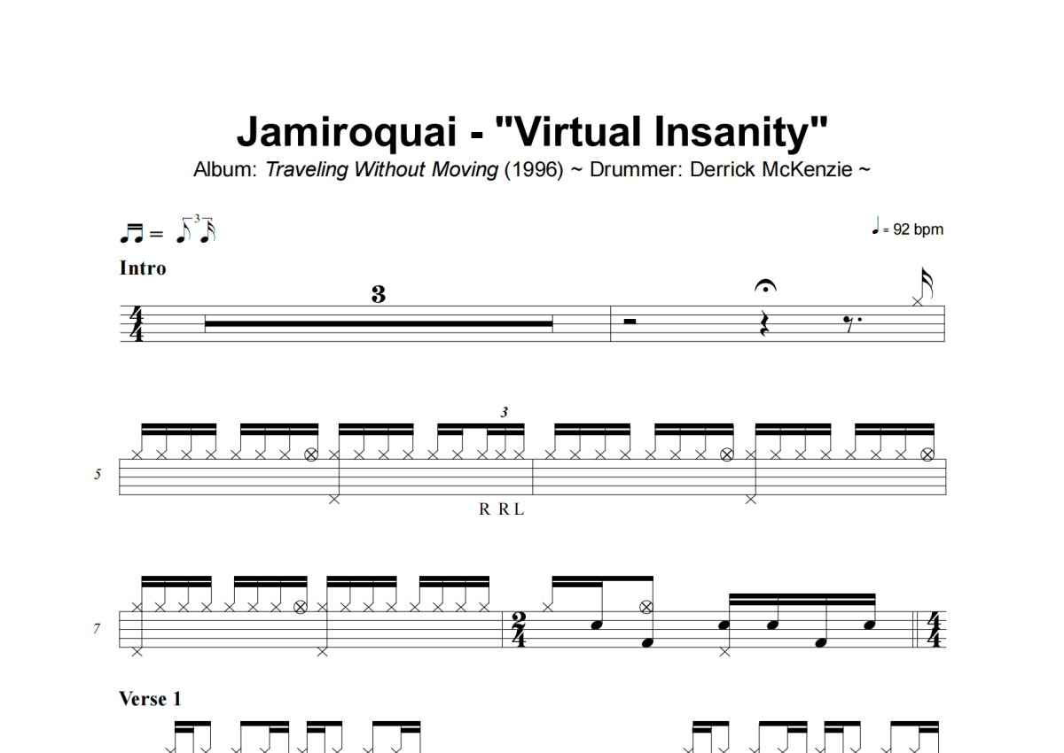 Jamiroquai《Virtual Insanity》架子鼓谱