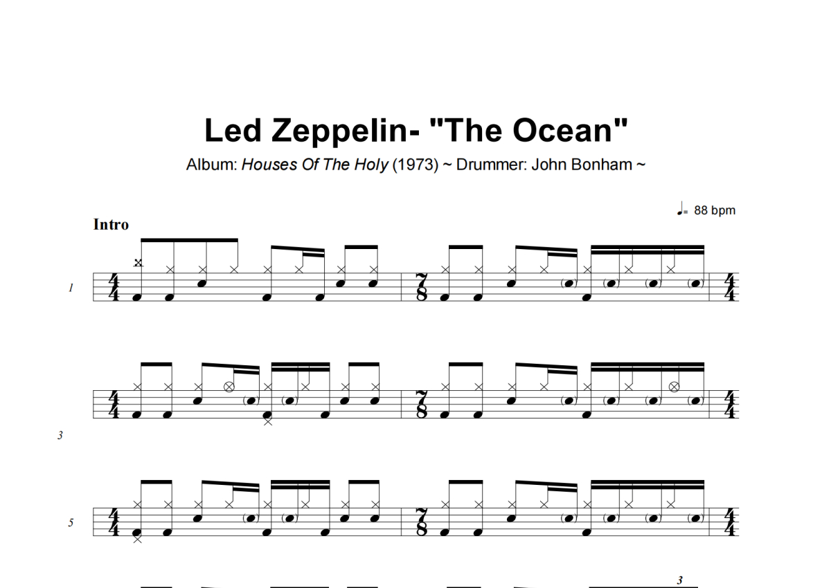 Led Zeppelin《The Ocean》架子鼓谱