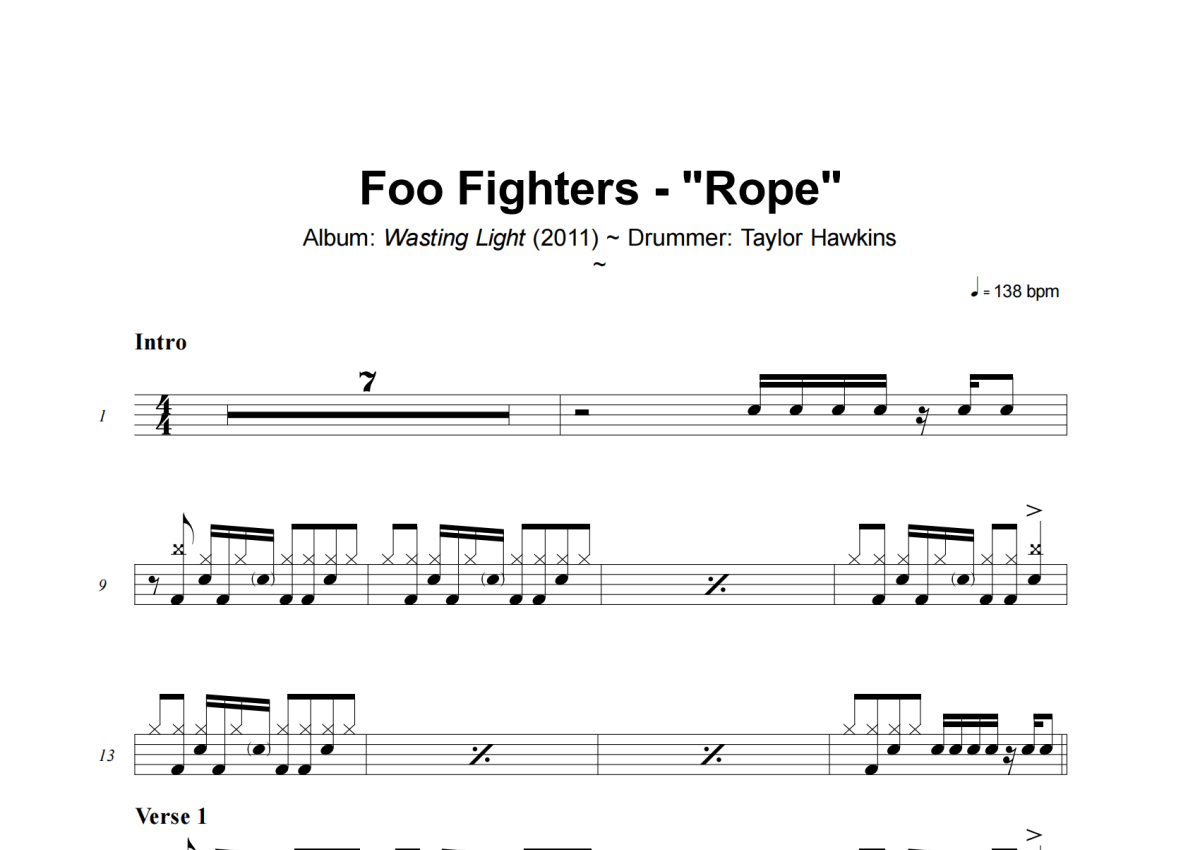 Foo Fighters《Rope》架子鼓谱