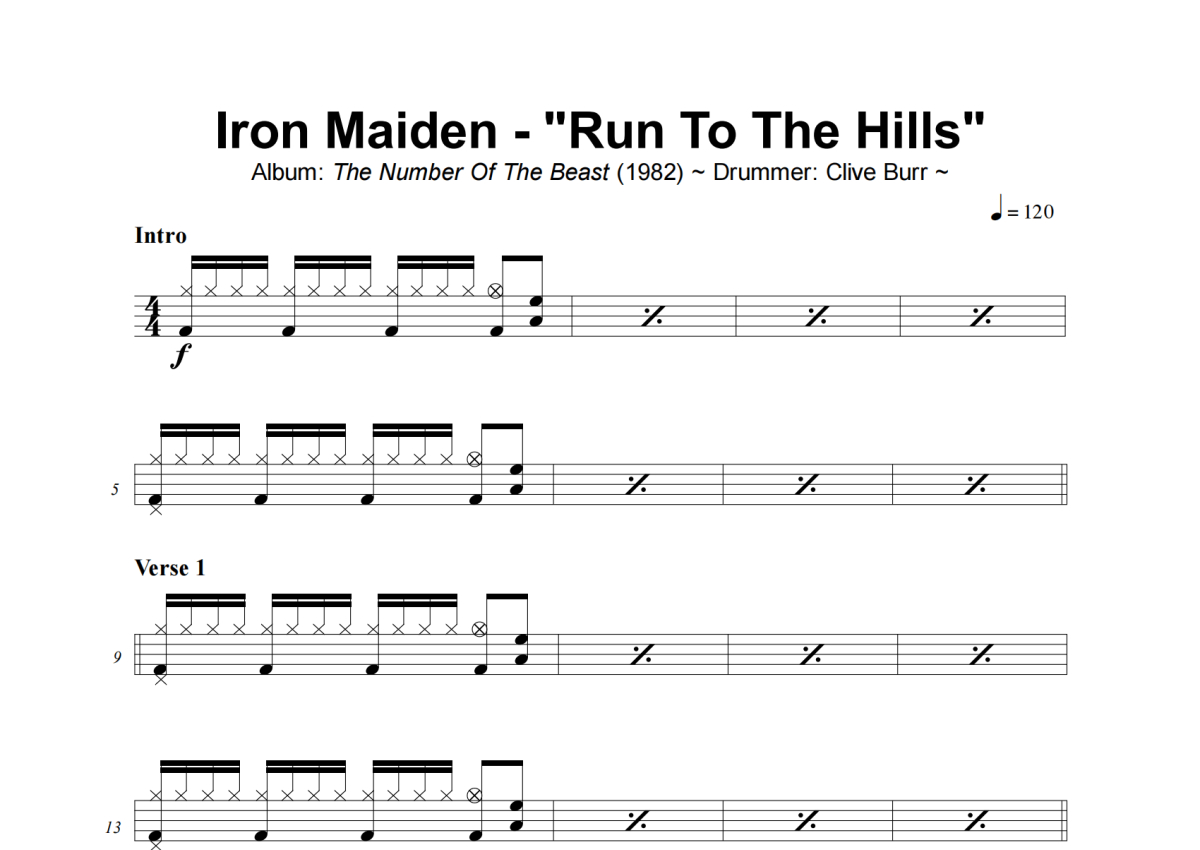 Run To The Hills架子鼓谱 - Iron Maiden演唱