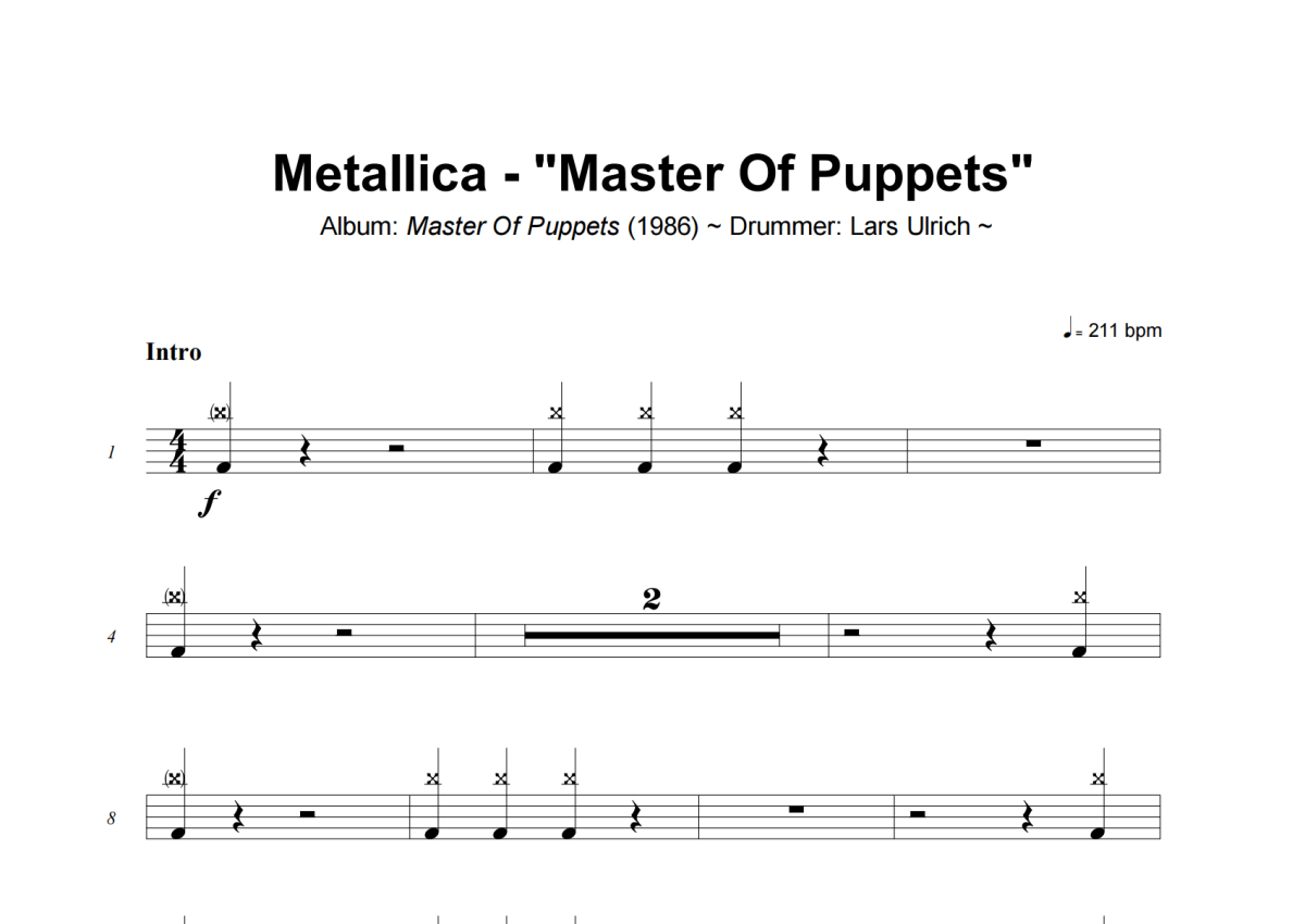 Metallica《Master Of Puppets》架子鼓谱