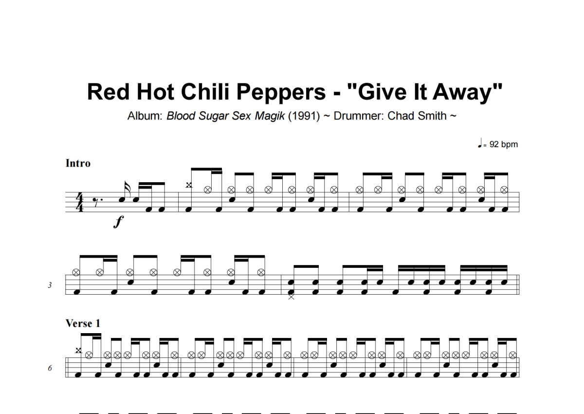 Red Hot Chili Peppers《Give It Away》架子鼓谱
