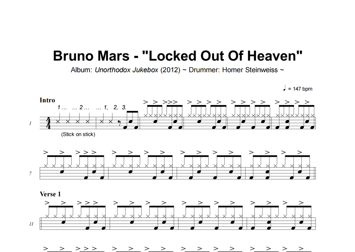 Bruno Mars《Locked Out of Heaven》架子鼓谱