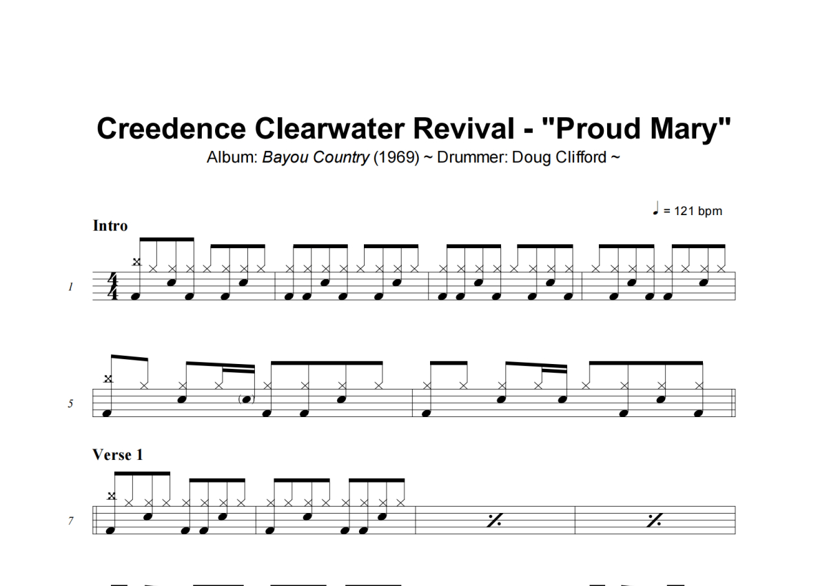 Creedence Clearwater Revival《Proud Mary》架子鼓谱