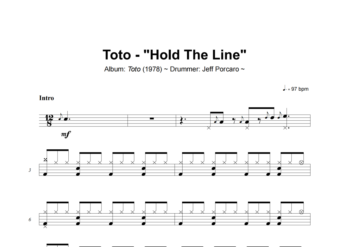 《Hold The Line》是Toto演唱的一首歌曲,这份架子鼓谱共有六张高清图谱,图谱由 @小虎鼓谱 编配上传,图谱使用五线谱编配,使用这份Hold The Line架子鼓谱,你将能够轻松地敲打出这首Toto的Hold The Line,快来尝试吧。