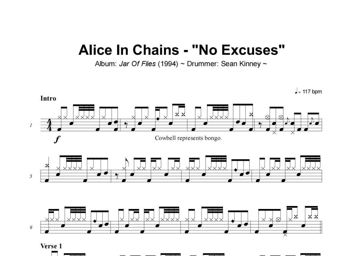 No Excuses架子鼓谱 - Alice In Chains演唱