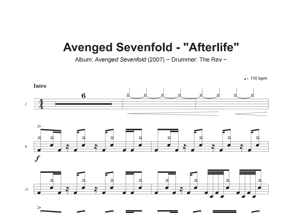Avenged Sevenfold《Afterlife》架子鼓谱