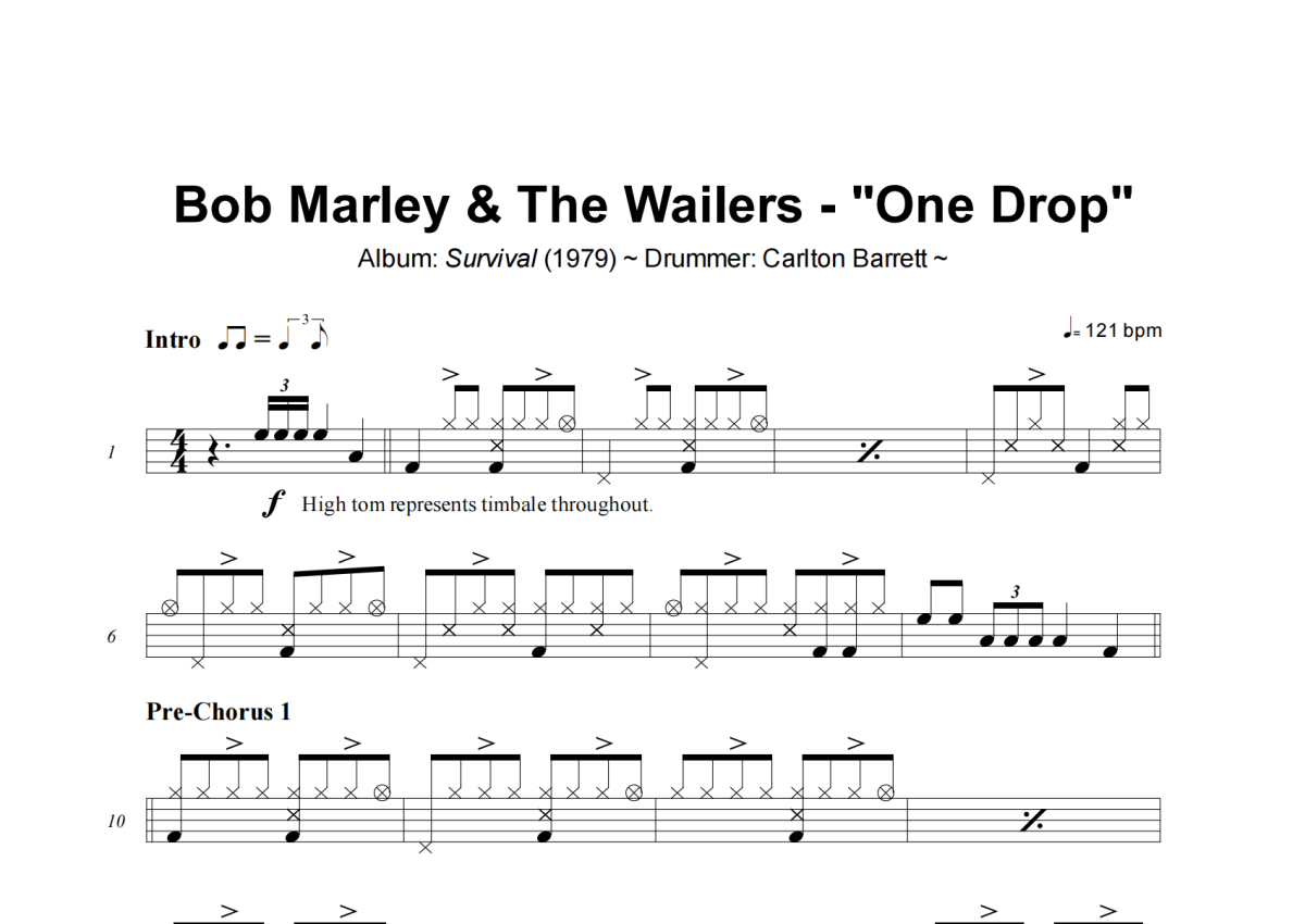 Bob Marley _ The Wailers《One Drop》架子鼓谱