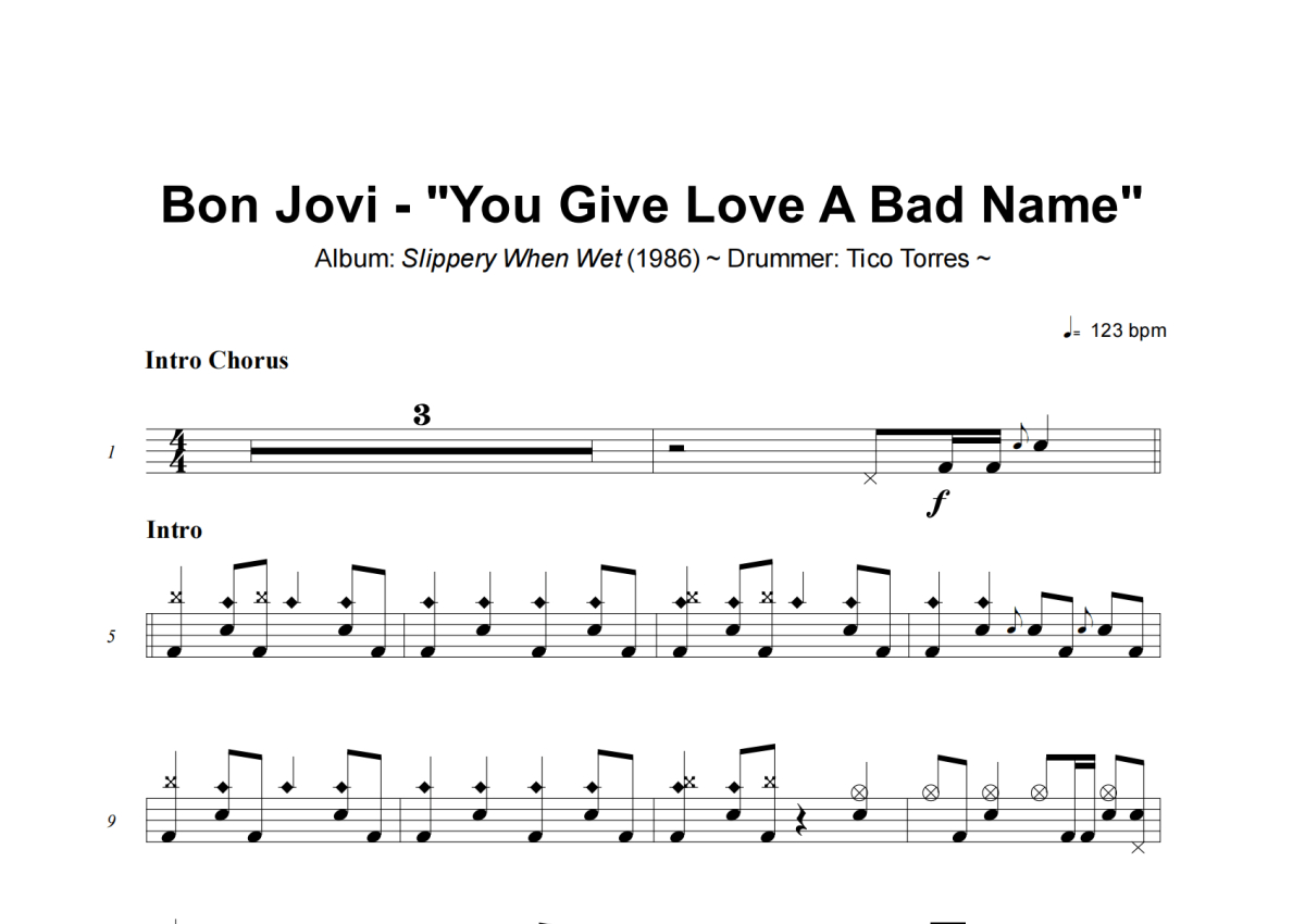 Bon Jovi《You Give Love A Bad Name》架子鼓谱