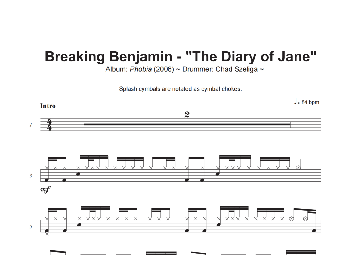 Breaking Benjamin《The Diary of Jane》架子鼓谱