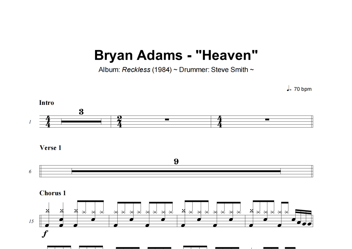 Bryan Adams《Heaven》架子鼓谱