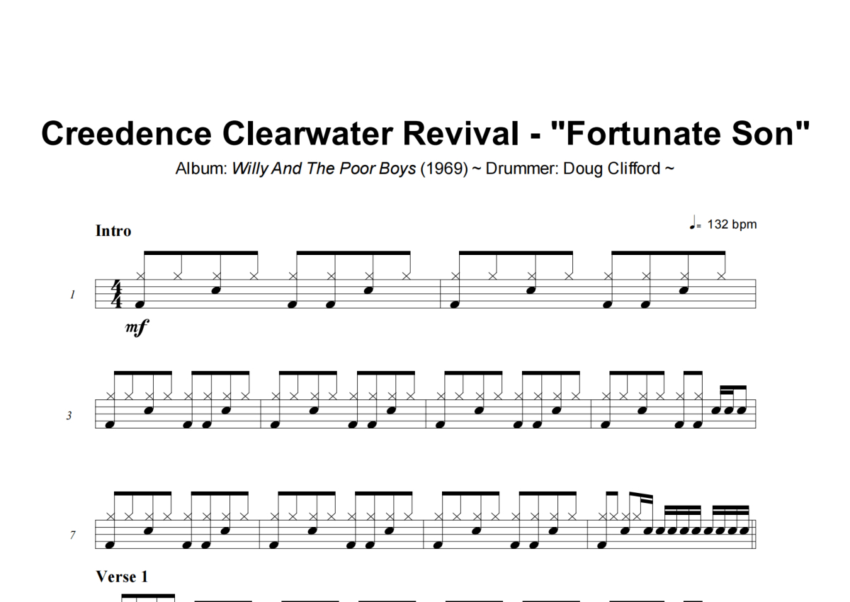 Creedence Clearwater Revival《Fortunate Son》架子鼓谱