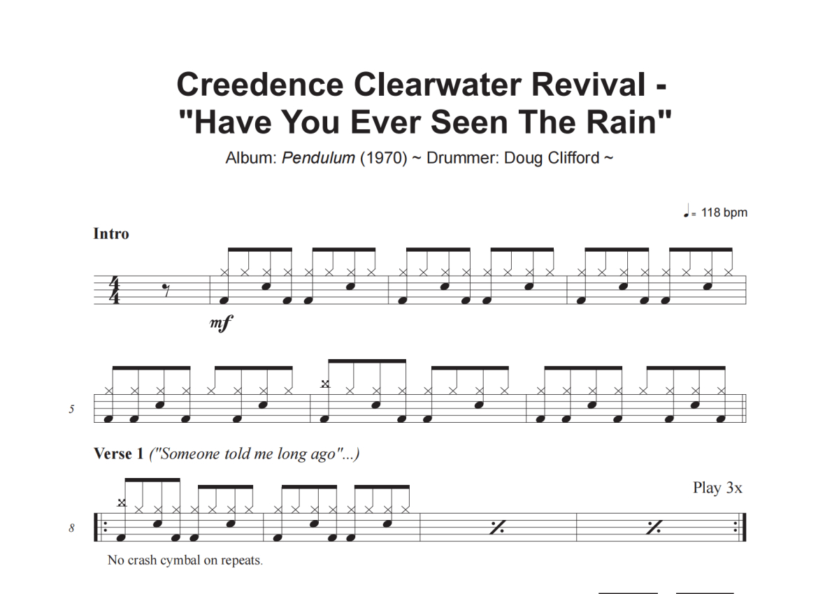 Have You Ever Seen The Rain架子鼓谱 - Creedence Clearwater Revival演唱