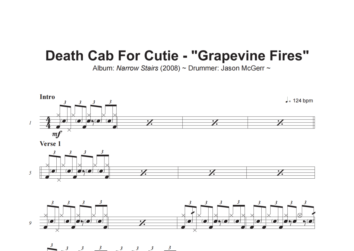Death Cab for Cutie《Grapevine Fires》架子鼓谱