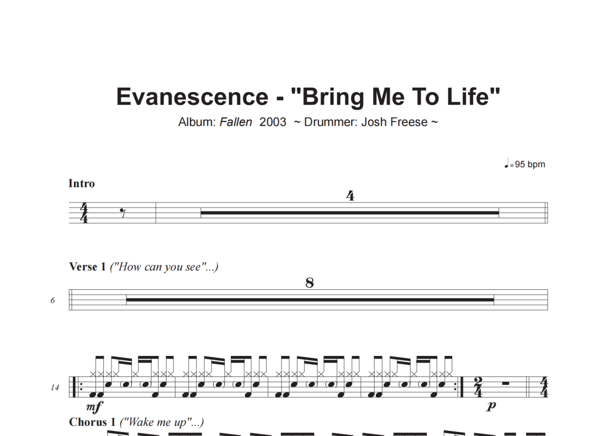 Bring Me To Life架子鼓谱 - Evanescence演唱