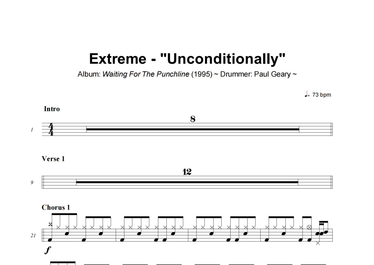 Extreme《Unconditionally》架子鼓谱