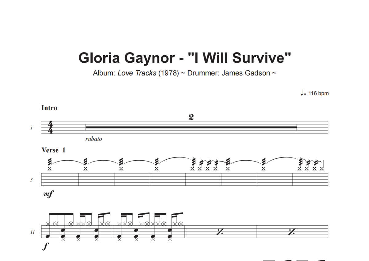 Gloria Gaynor《I Will Survive》架子鼓谱