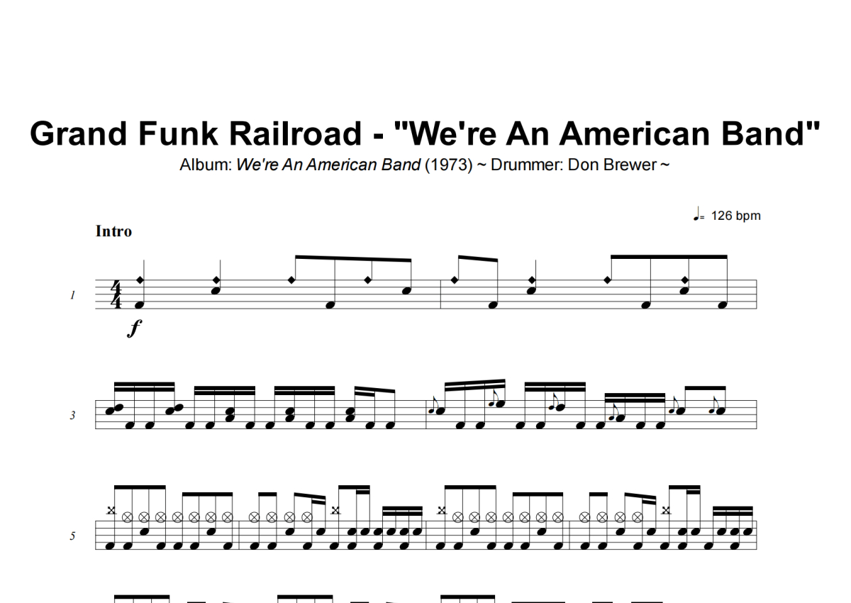 Grand Funk Railroad《We_re An American Band》架子鼓谱