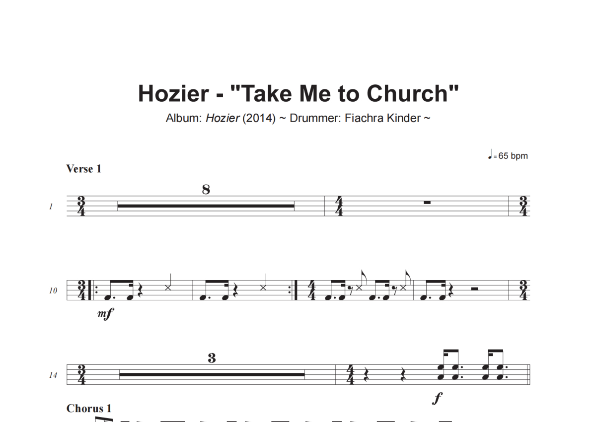 Hozier《Take Me to Church》架子鼓谱