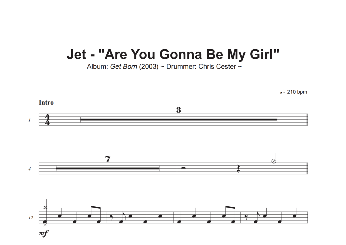Jet《Are You Gonna Be My Girl》架子鼓谱