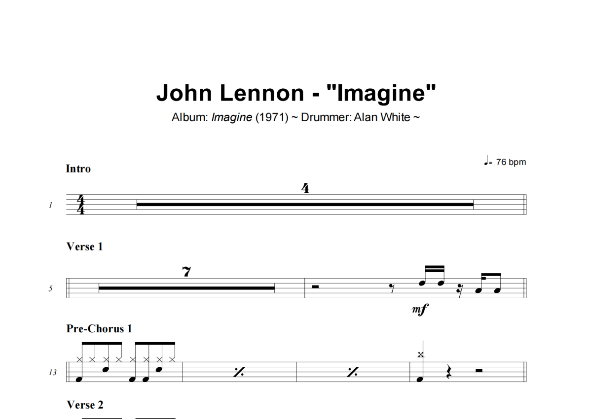 John Lennon《Imagine》架子鼓谱