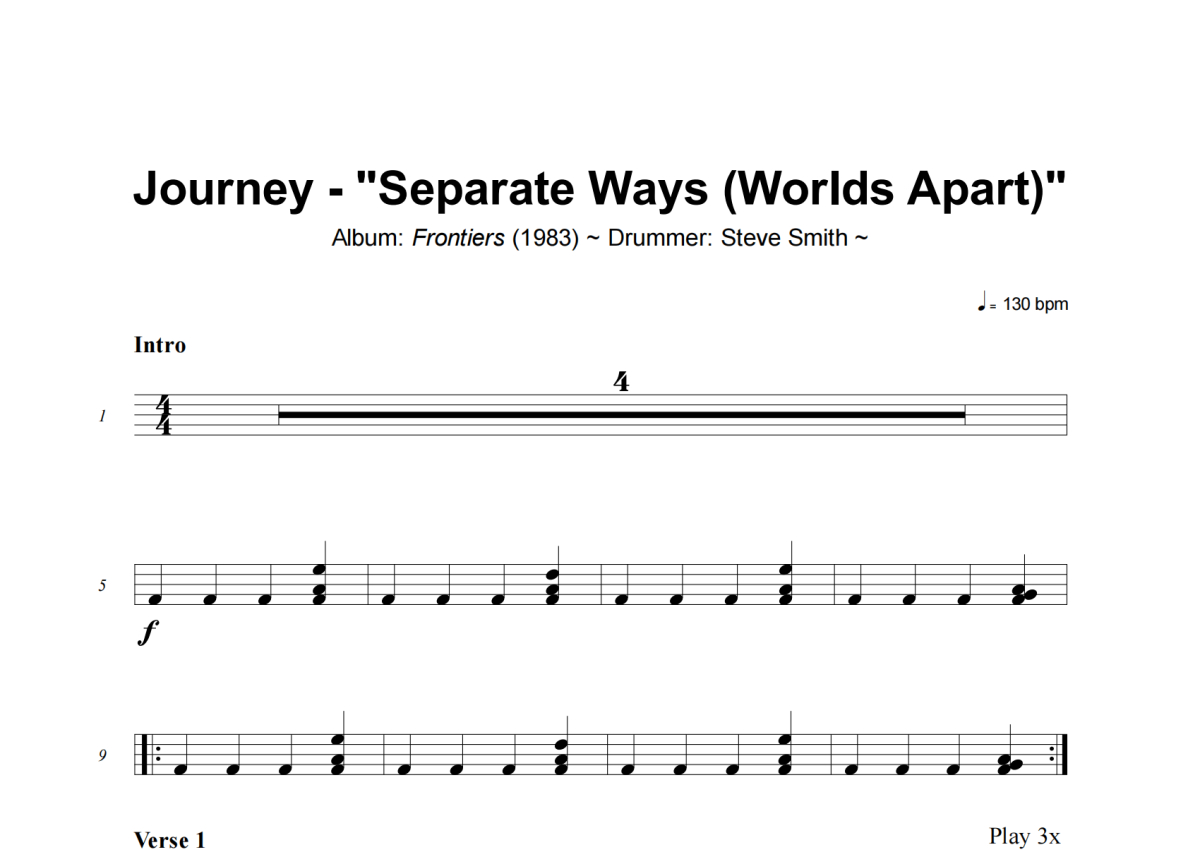 Journey《Separate Ways (Worlds Apart)》架子鼓谱