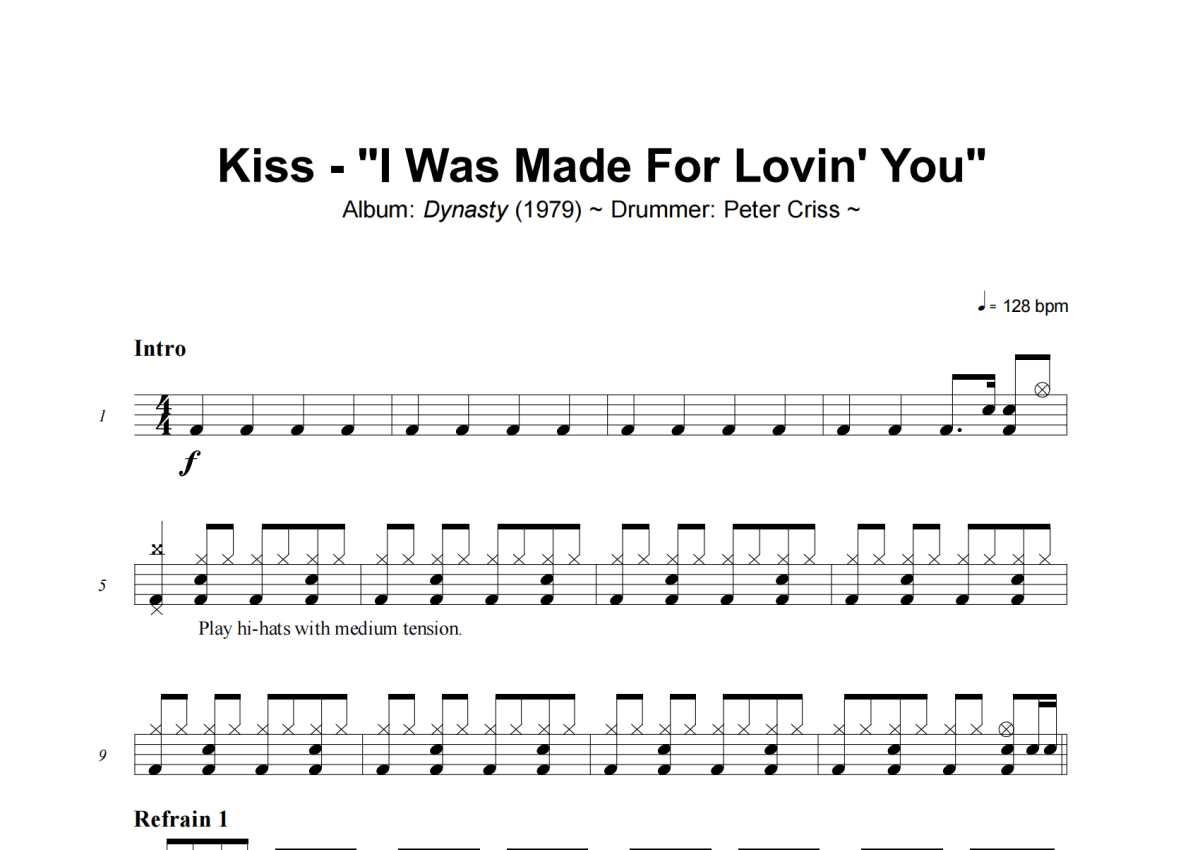 KISS《I Was Made For Lovin' You》架子鼓谱