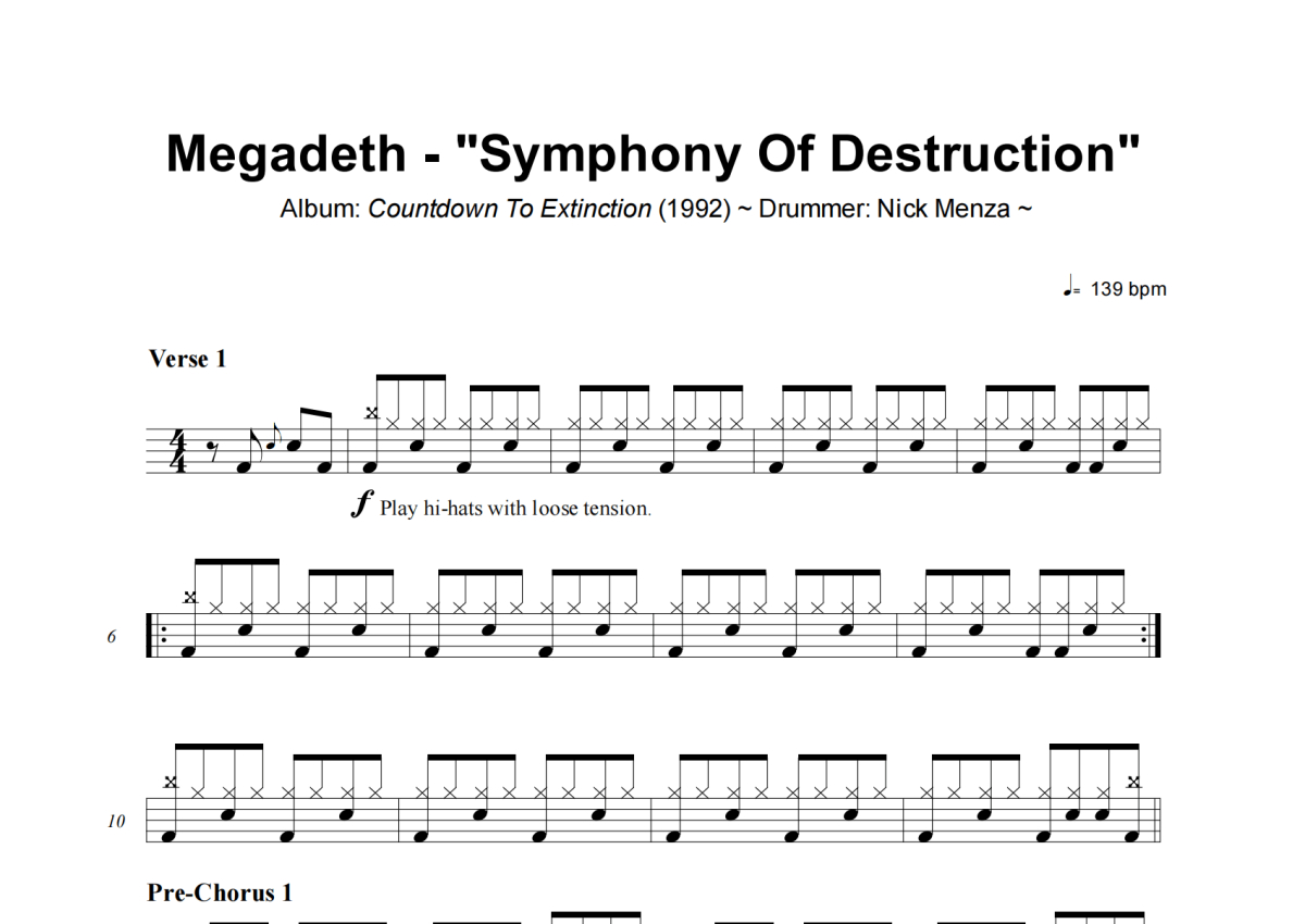 Megadeth《Symphony of Destruction》架子鼓谱