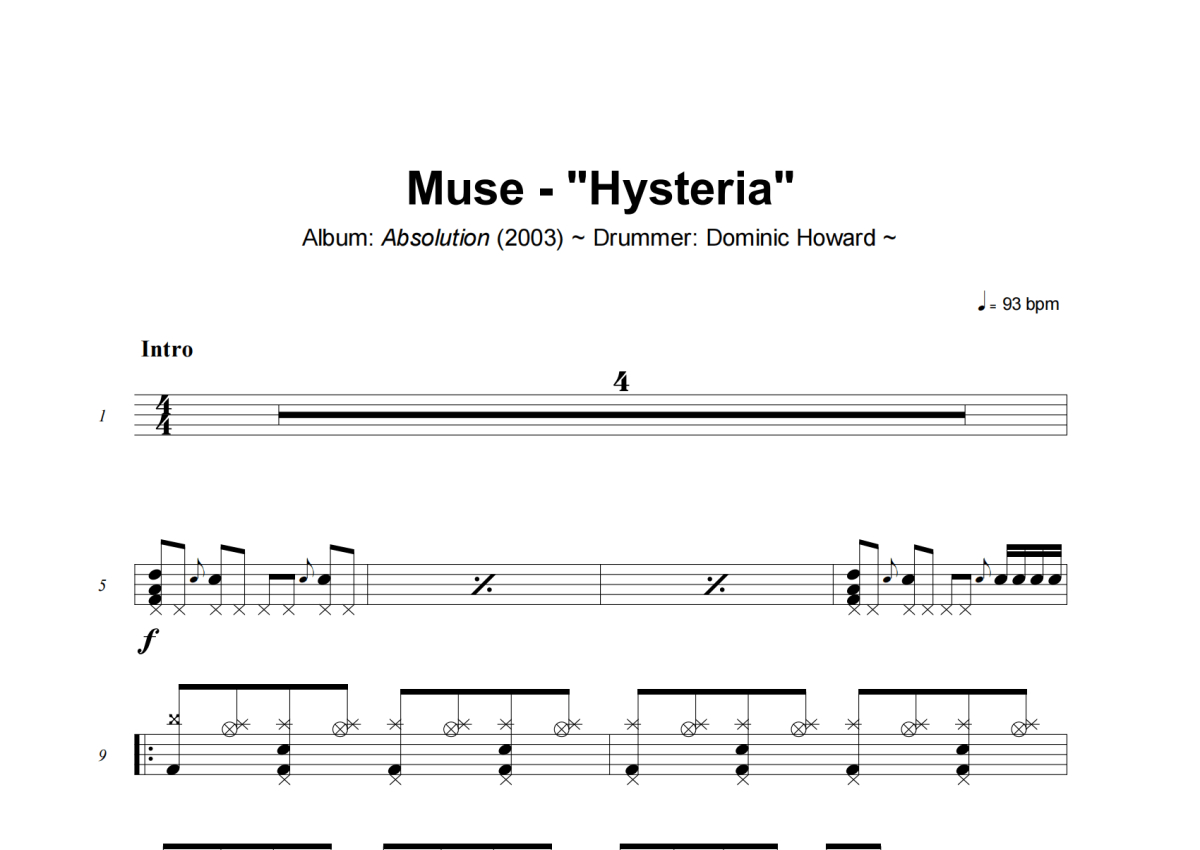 Muse《Hysteria》架子鼓谱