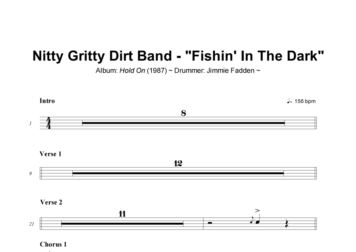 Nitty Gritty Dirt Band《Fishin in the Dark》架子鼓谱