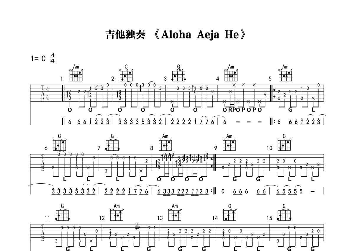 《Aloha Heja He》,本吉他谱采用的是C调指法编配,这份吉他谱共有两张高清图谱,图谱由 @深蓝雨吉他 编配上传,图谱使用六线谱编配,曲谱配备了相关的视频提供浏览,使用这份Aloha Heja He吉他谱,可以让你更加方便地掌握这首歌曲的演奏技巧,快来尝试吧。分享一首很多网友都推荐的神曲《Aloha Heja He》,歌曲有毒让人像魔咒一般一直留存在脑海里。这是一首水手的歌,充满正能量,听着它就像海上航行的船,老船长掌舵,水手们摇起桅杆,带领我们乘风破浪勇往直前。城市的喧嚣,工作和生活的压力让人透不过气,不妨来听听这首旋律舒服轻快的歌,放下包袱,享受一刻淡然。本文分享的是来自深蓝雨吉他编配的《Aloha Heja He》吉他指弹谱附教学。