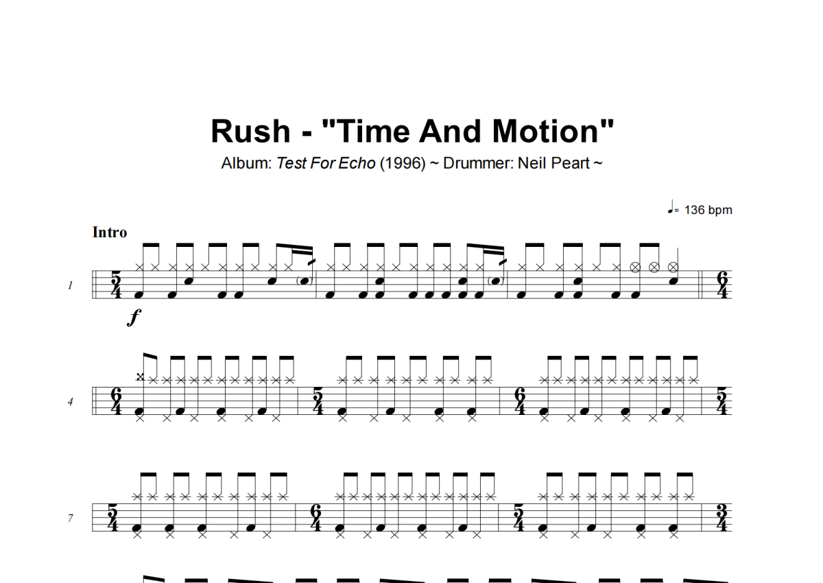 Rush《Time And Motion》架子鼓谱