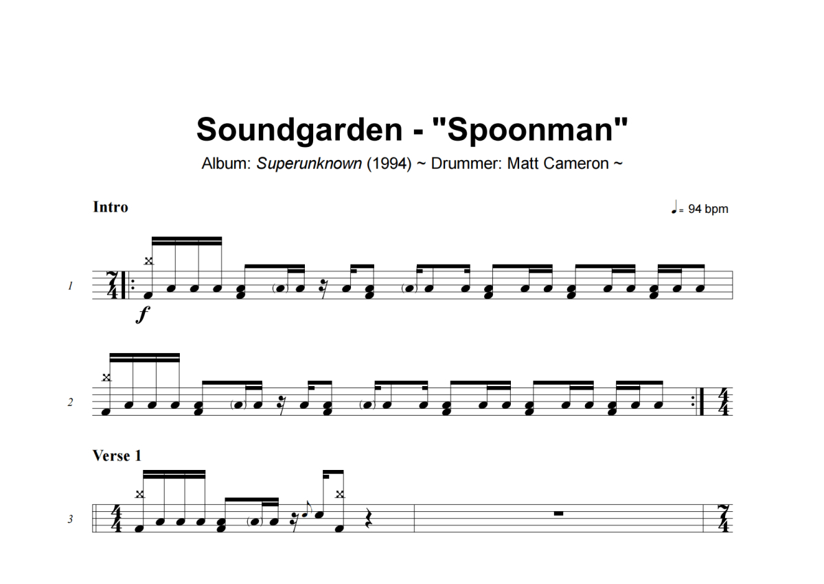 Soundgarden《Spoonman》架子鼓谱