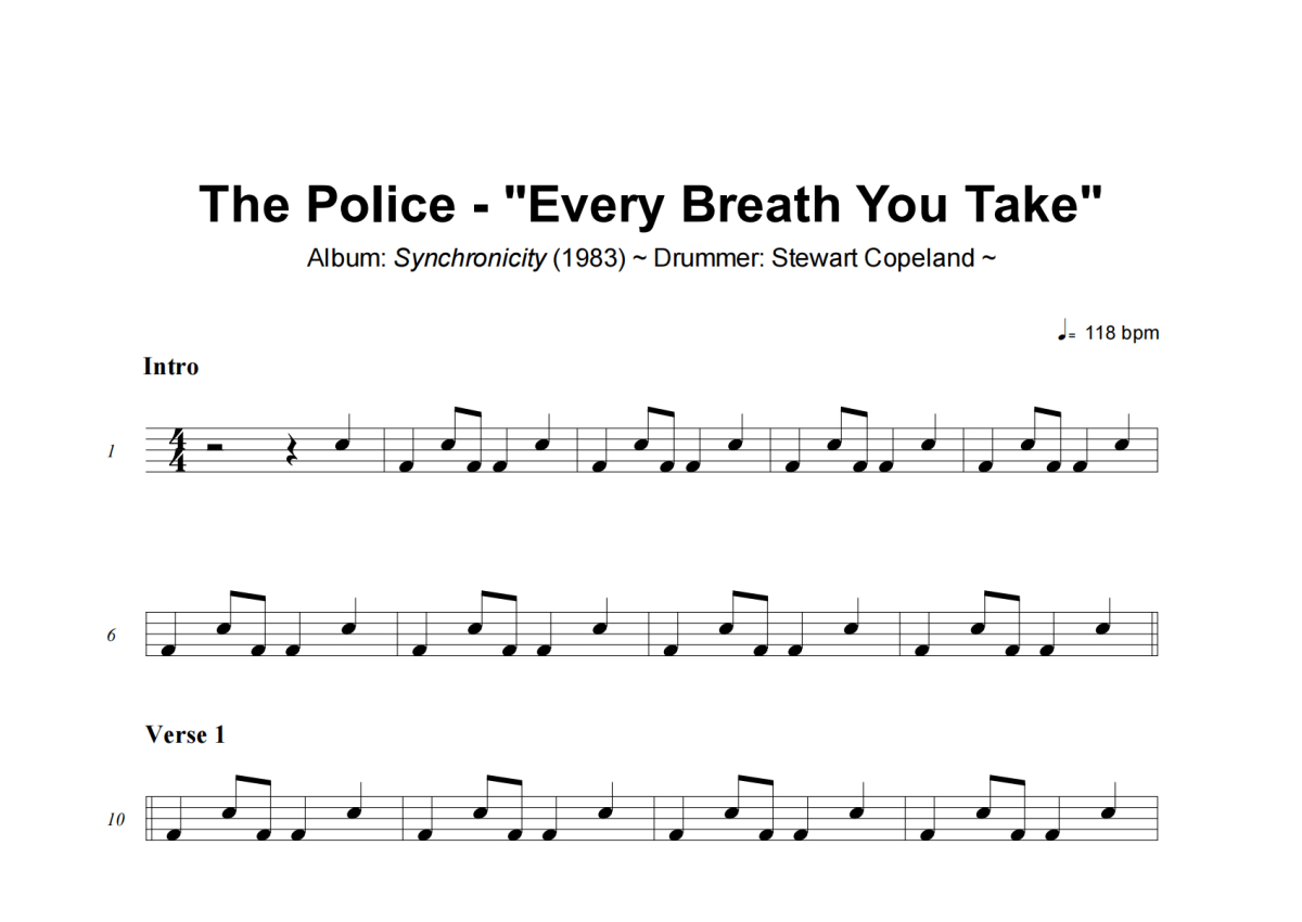 The Police《Every Breath You Take》架子鼓谱