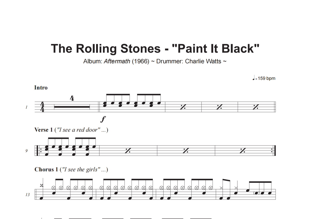 The Rolling Stones《Paint It Black》架子鼓谱