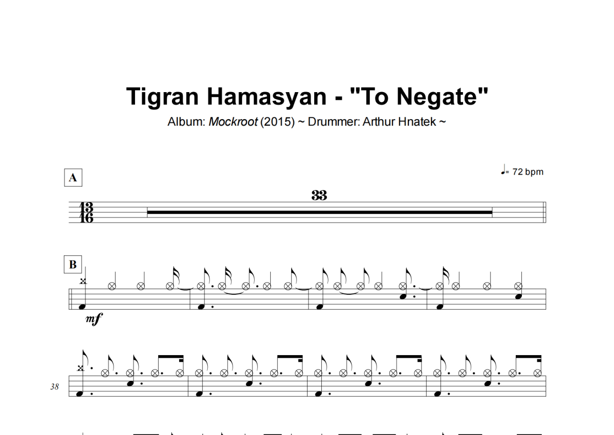 《To Negate》是Tigran Hamasyan演唱的一首歌曲,这份架子鼓谱共有四张高清图谱,图谱由 @小虎鼓谱 编配上传,图谱使用五线谱编配,使用这份To Negate架子鼓谱,你将能够轻松地敲打出这首Tigran Hamasyan的To Negate,快来尝试吧。