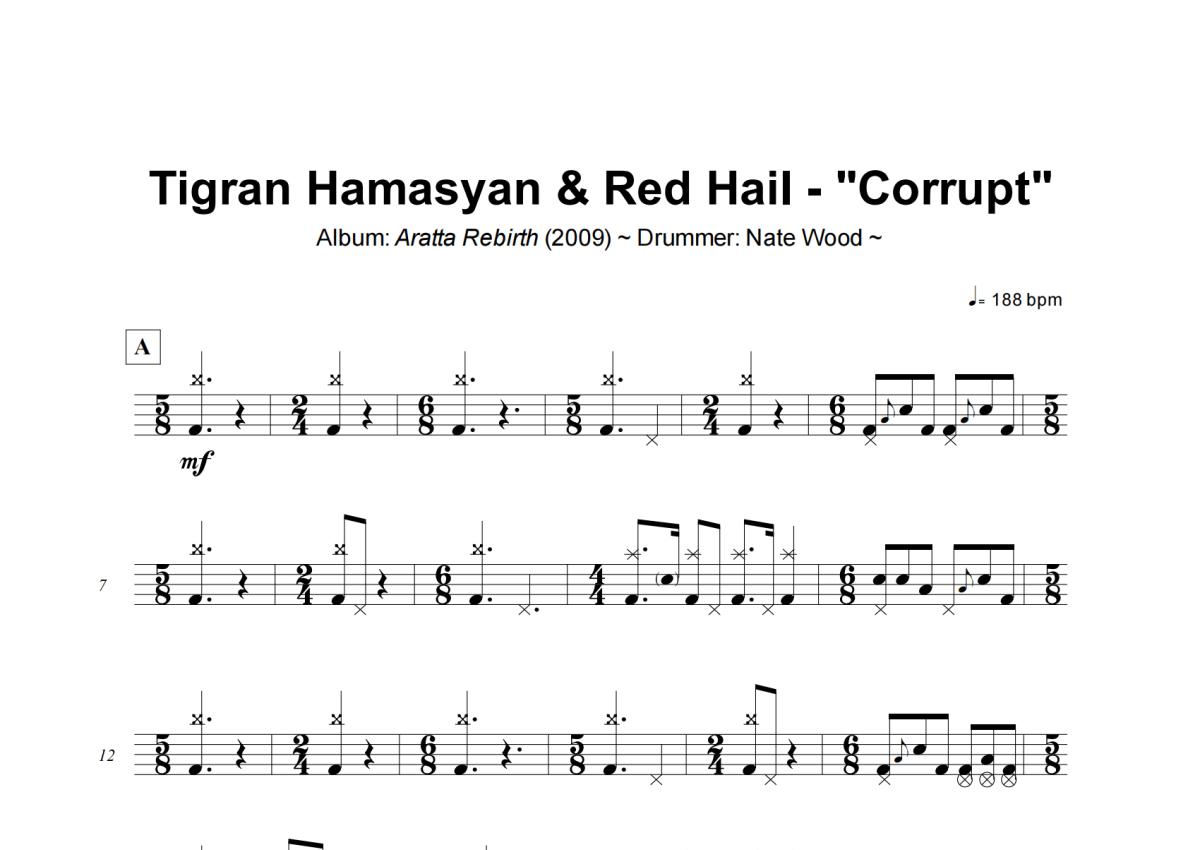 Tigran Hamasyan _ Red Hail《Corrupt》架子鼓谱