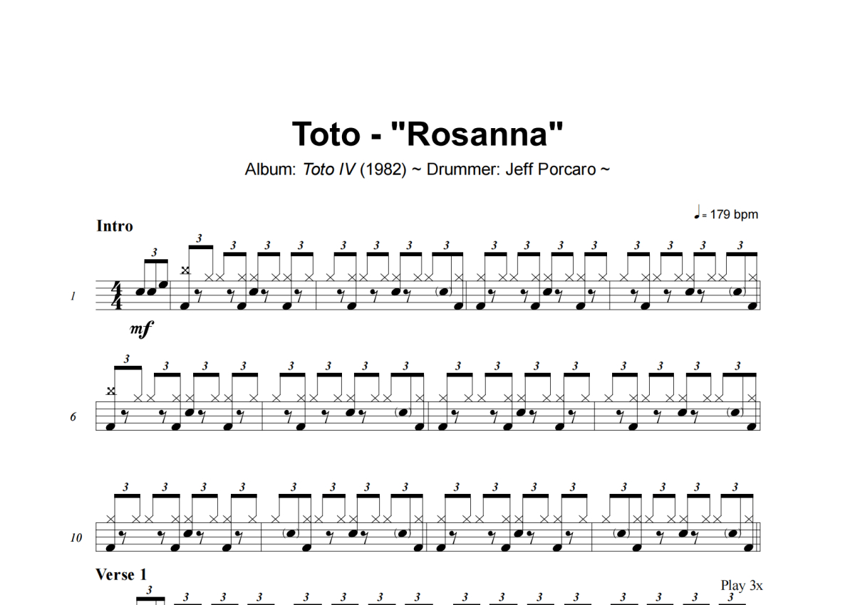Toto《Rosanna》架子鼓谱
