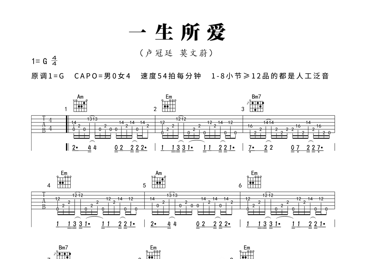 《一生所爱》是卢冠廷演唱的一首歌曲,本吉他谱采用的是G调指法编配,这份吉他谱共有三张高清图谱,图谱由 @深蓝雨吉他 编配上传,图谱使用六线谱编配,包含吉他和弦指法、简谱以及歌词部分,使用这份一生所爱吉他谱,可以让你更加方便地掌握这首歌曲的弹唱技巧,快来尝试吧。