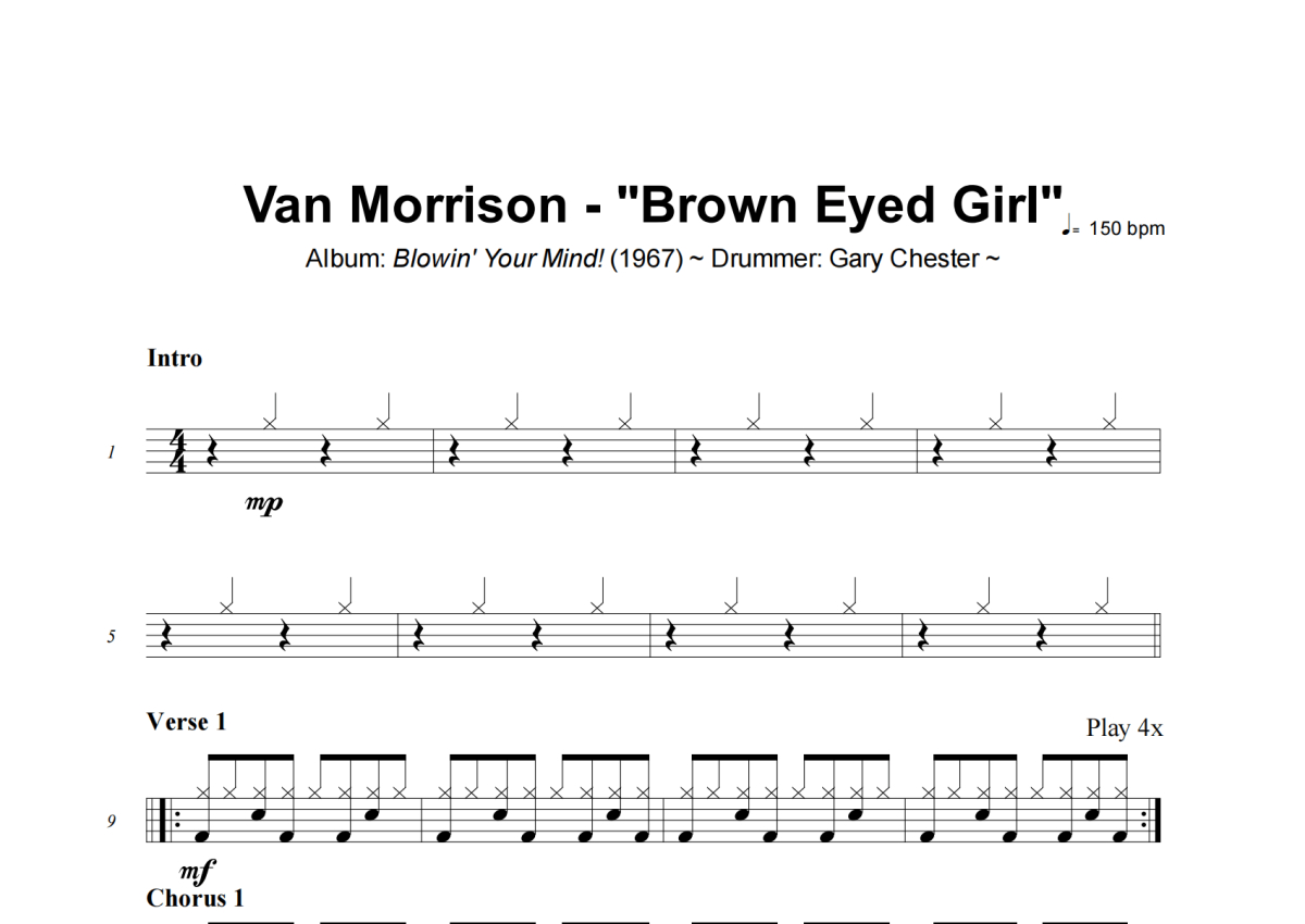 Van Morrison《Brown Eyed Girl》架子鼓谱