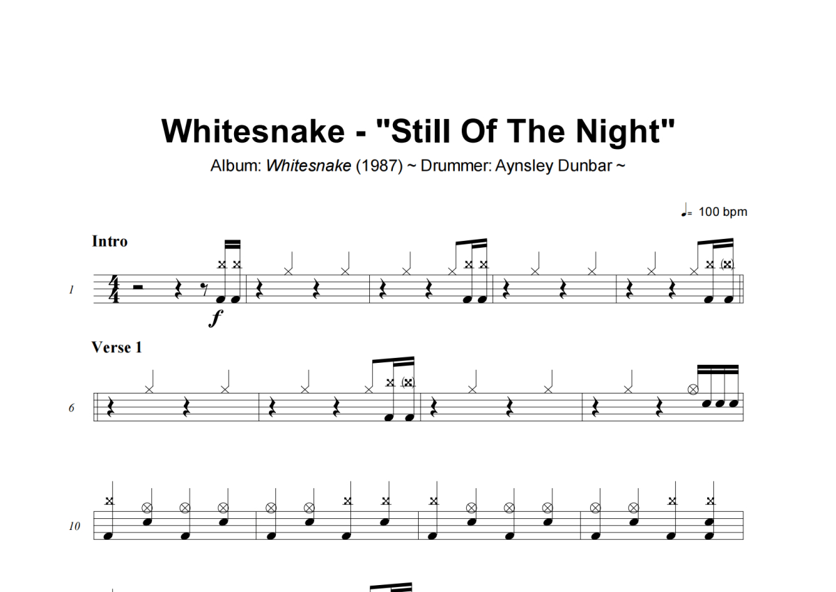 Whitesnake《Still Of The Night》架子鼓谱