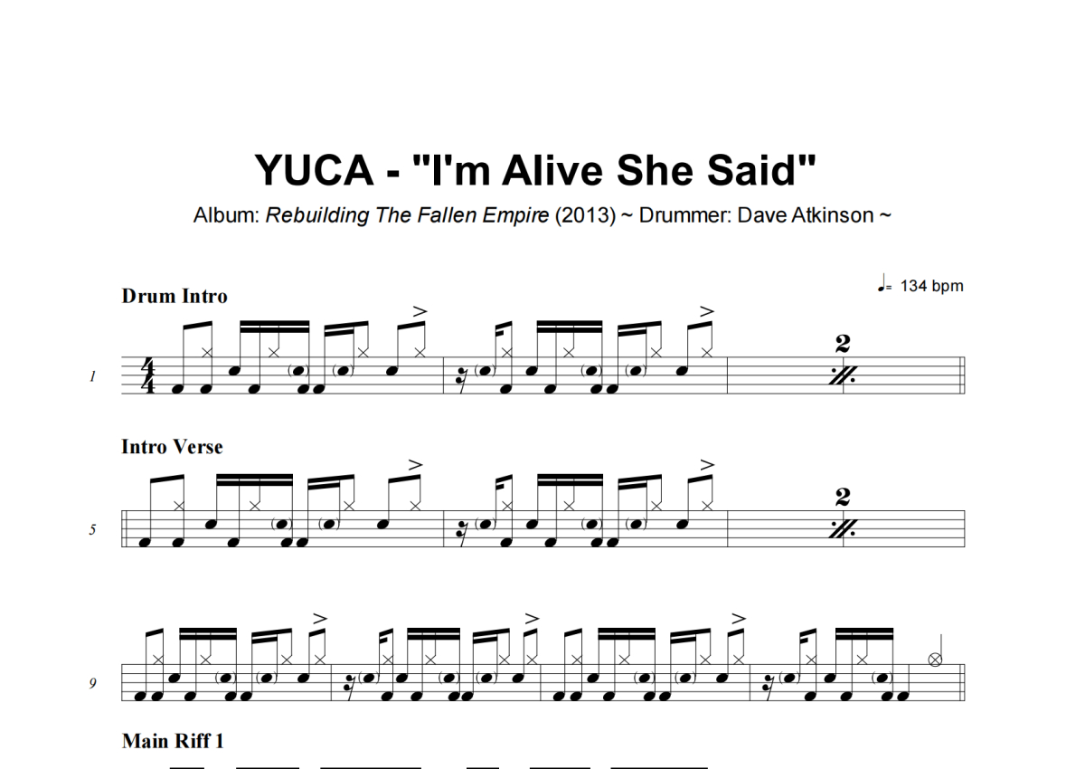 YUCA《I_m Alive She Said》架子鼓谱