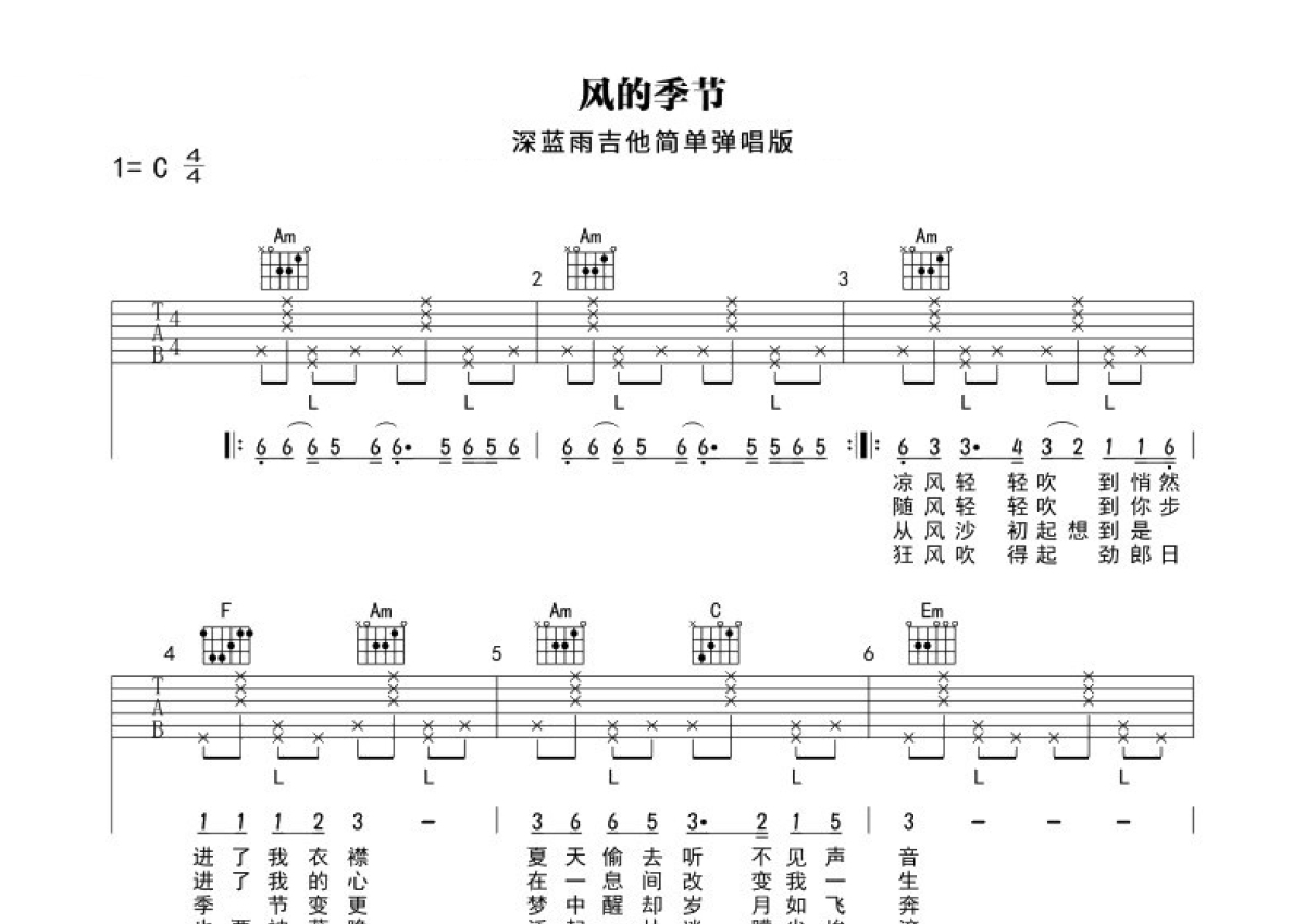 《风的季节》是徐小凤演唱的一首歌曲,本吉他谱采用的是C调指法编配,这份吉他谱共有两张高清图谱,图谱由 @深蓝雨吉他 编配上传,图谱使用六线谱编配,包含吉他和弦指法、简谱以及歌词部分,使用这份风的季节吉他谱,可以让你更加方便地掌握这首歌曲的弹唱技巧,快来尝试吧。