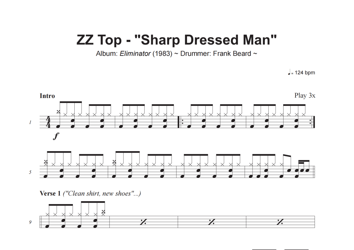 ZZ Top《Sharp Dressed Man》架子鼓谱
