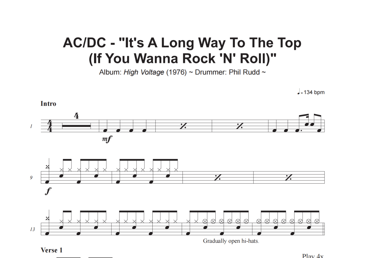 《It_s A Long Way To The Top (If You Wanna Rock _N_ Roll)》是AC_DC演唱的一首歌曲,这份架子鼓谱共有五张高清图谱,图谱由 @小虎鼓谱 编配上传,图谱使用五线谱编配,使用这份It_s A Long Way To The Top (If You Wanna Rock _N_ Roll)架子鼓谱,你将能够轻松地敲打出这首AC_DC的It_s A Long Way To The Top (If You Wanna Rock _N_ Roll),快来尝试吧。