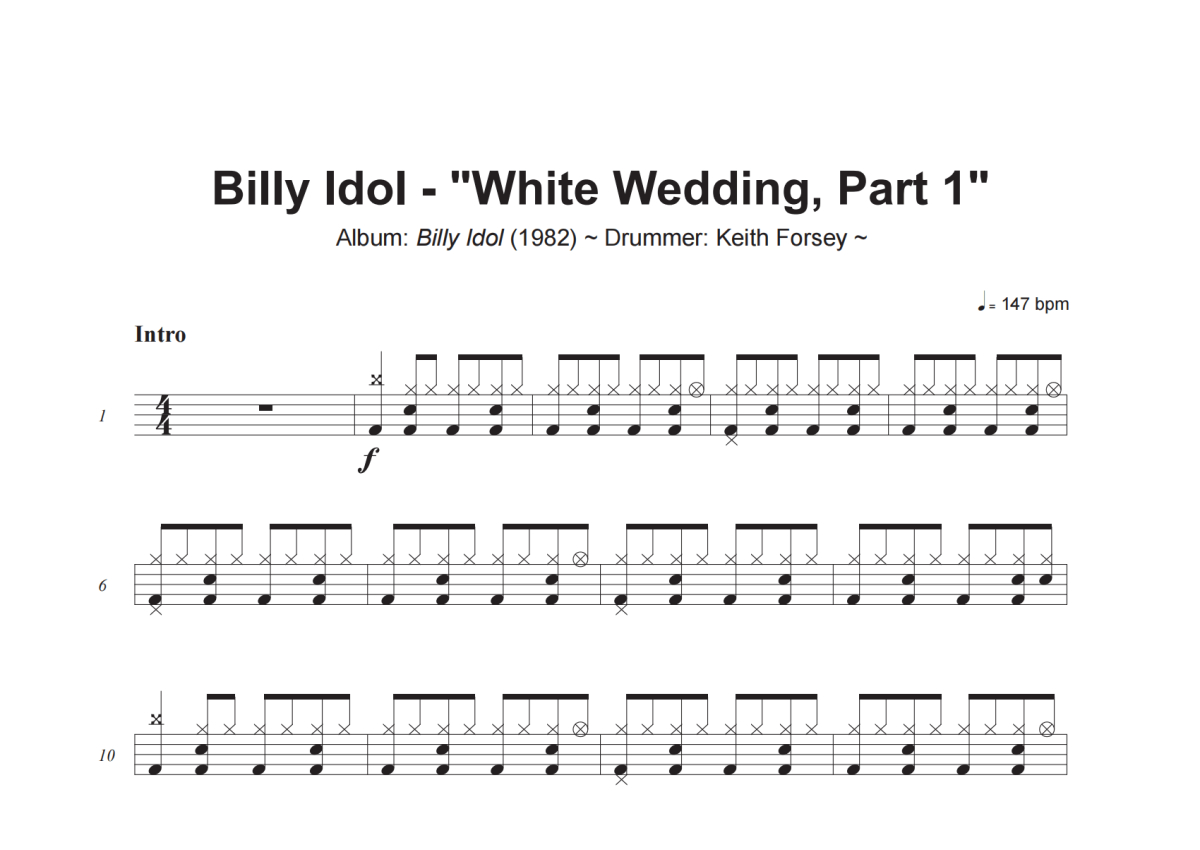 Billy Idol《White Wedding, Part 1》架子鼓谱
