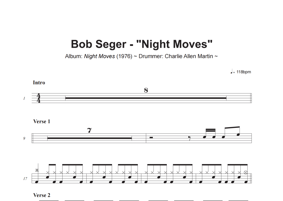 Bob Seger《Night Moves》架子鼓谱