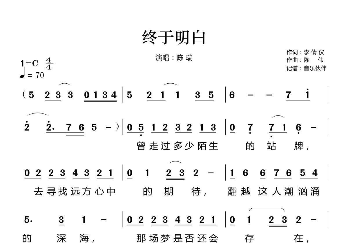 终于明白简谱 - 陈瑞演唱
